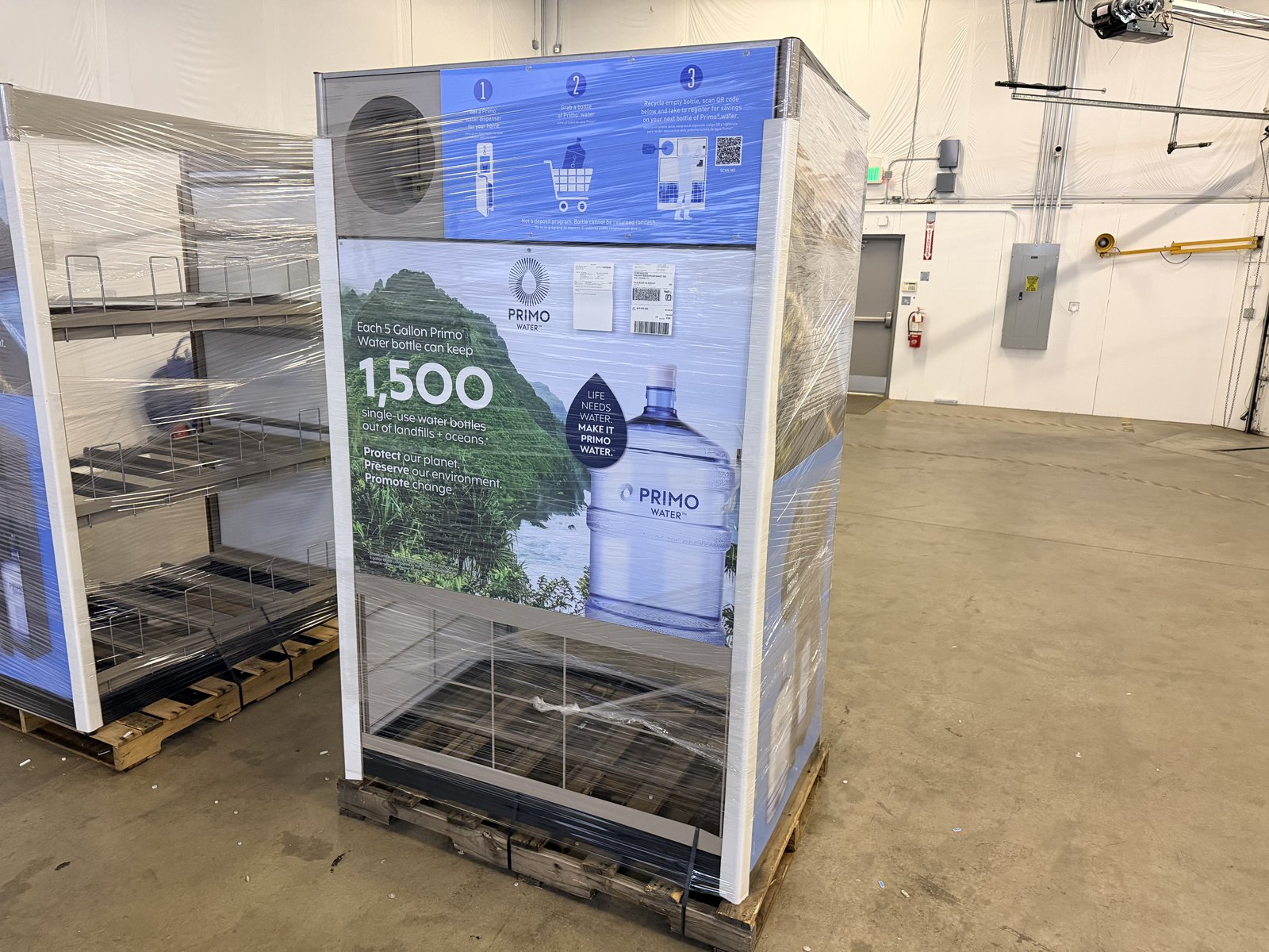 1: Check the Scope of Work under Buyer’s Custom Fields in your Work Order. If something needs to be moved, do so now (ask a store employee for help if it’s merchandise). If an existing PrimoWater display needs to be moved, you will need to remove all water jugs in order to shift it. The store may receive a unit with different Primo Brands (ie. Arrowhead, Poland Springs, Zephyrhills, Deer Park, etc). All instructions are exactly the same regardless of the branding.